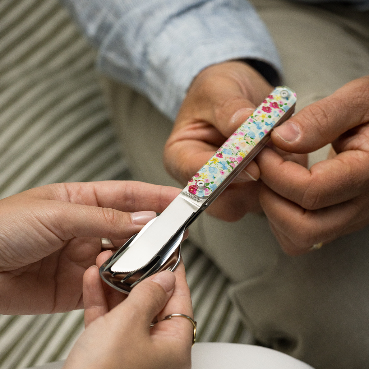 Perfettamente lavabili in lavastoviglie, le vostre posate in polimero 12H34 possono essere lavate senza particolari precauzioni. Microdentata, la lama del coltello ti garantisce un'affilatura perfetta senza mai bisogno di essere riaffilata. Portali ovunque, li abbiamo progettati per te!