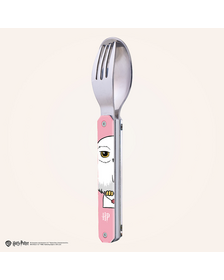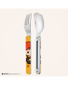 Posate in acciaio inossidabile martensitico 2CR14 con finitura lucida a specchio. Include un cucchiaio e una forchetta a quattro rebbi. Manico decorato in polimero trasparente (PC). Montaggio magnetico. Fornito con custodia rigida in polipropilene (PP). Lavabile in lavastoviglie.