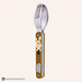 Posate in acciaio inossidabile martensitico 2CR14 con finitura lucida a specchio. Include un cucchiaio e una forchetta a 4 rebbi. Manico decorato in polimero trasparente (PC). Montaggio magnetico. Fornito con custodia rigida in polipropilene (PP). Lavabile in lavastoviglie.