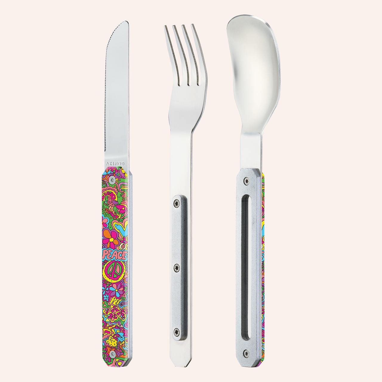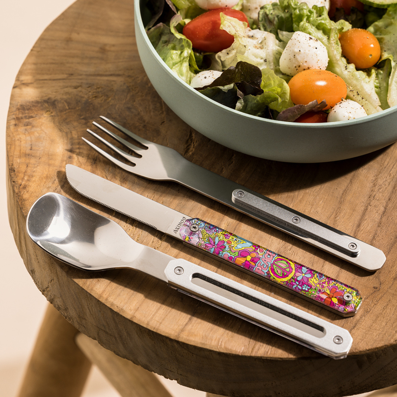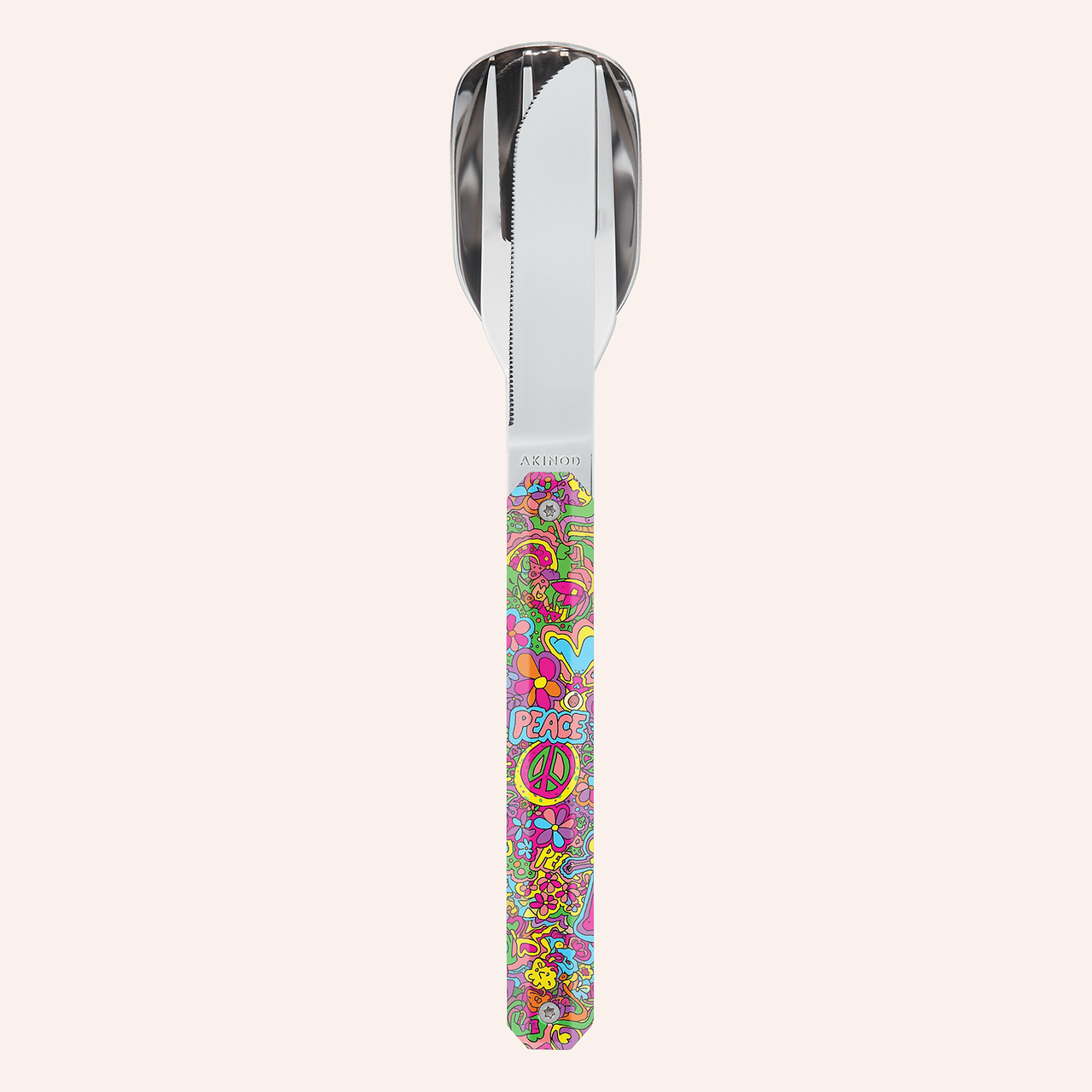 Flower power durante la pausa pranzo. Il design Peace irradia un'energia gioiosa, libera e colorata per pasti che vanno controcorrente.