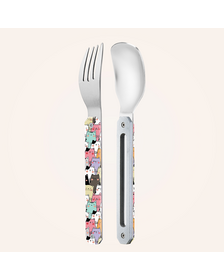 Posate in acciaio inossidabile martensitico 2CR14 con finitura lucida a specchio. Include un cucchiaio grande, una forchetta a quattro rebbi e un coltello microdentato. Manico decorato in polimero trasparente (PC). Montaggio magnetico.