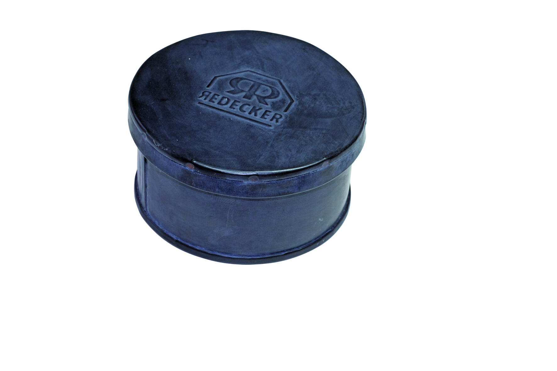 Scatola portasapone rotonda di metallo nero con coperchio. Dimensioni: diametro 8,3 x 4,3 cm.