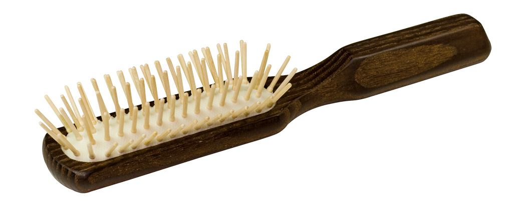 Spazzola per capelli rettangolare Thermowood, con cuscinetto di gomma e punte in legno di betulla arrotondate. Dimensioni: 20 cm.