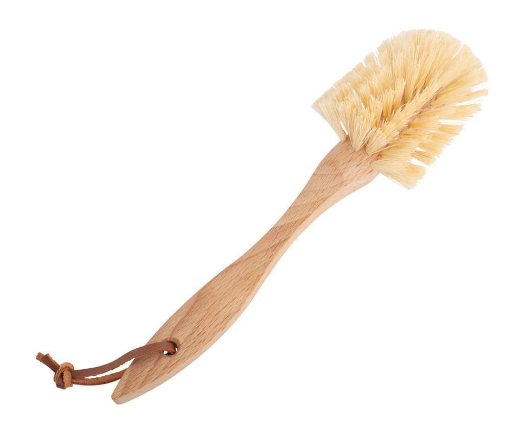 Grazie al manico curvo, la nostra spazzola per lavastoviglie Redecker è particolarmente comoda da tenere in mano. L'attrezzatura angolata aggiuntiva nella zona anteriore consente di raggiungere tutti gli angoli.