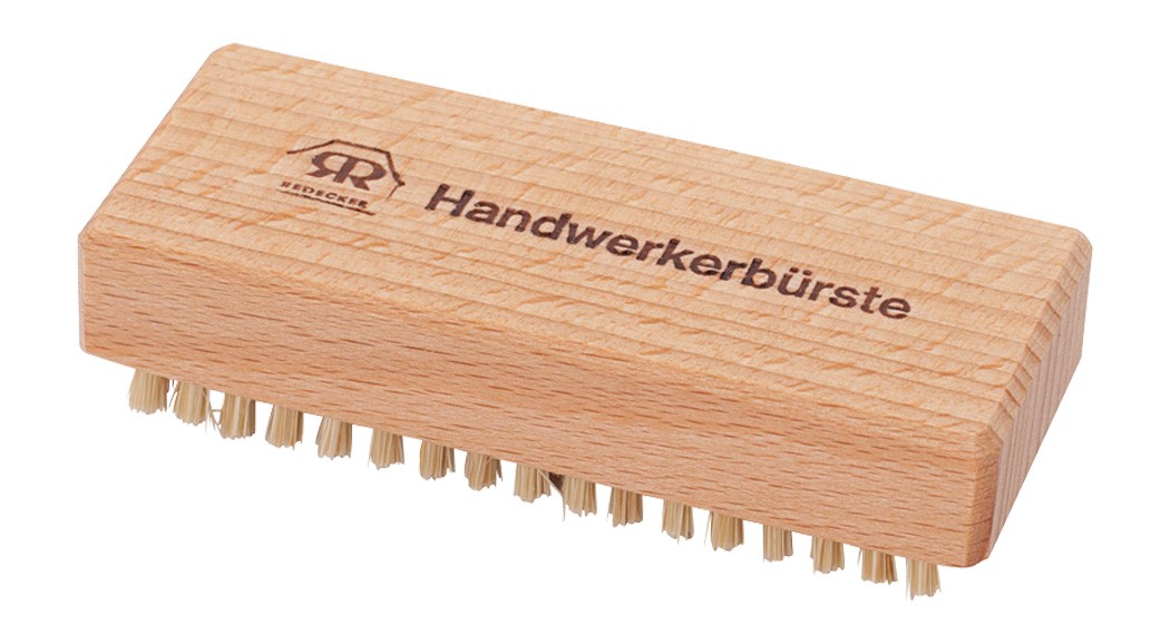 Spazzola per unghie per artigiani, setole corte e dure, scritta in tedesco.