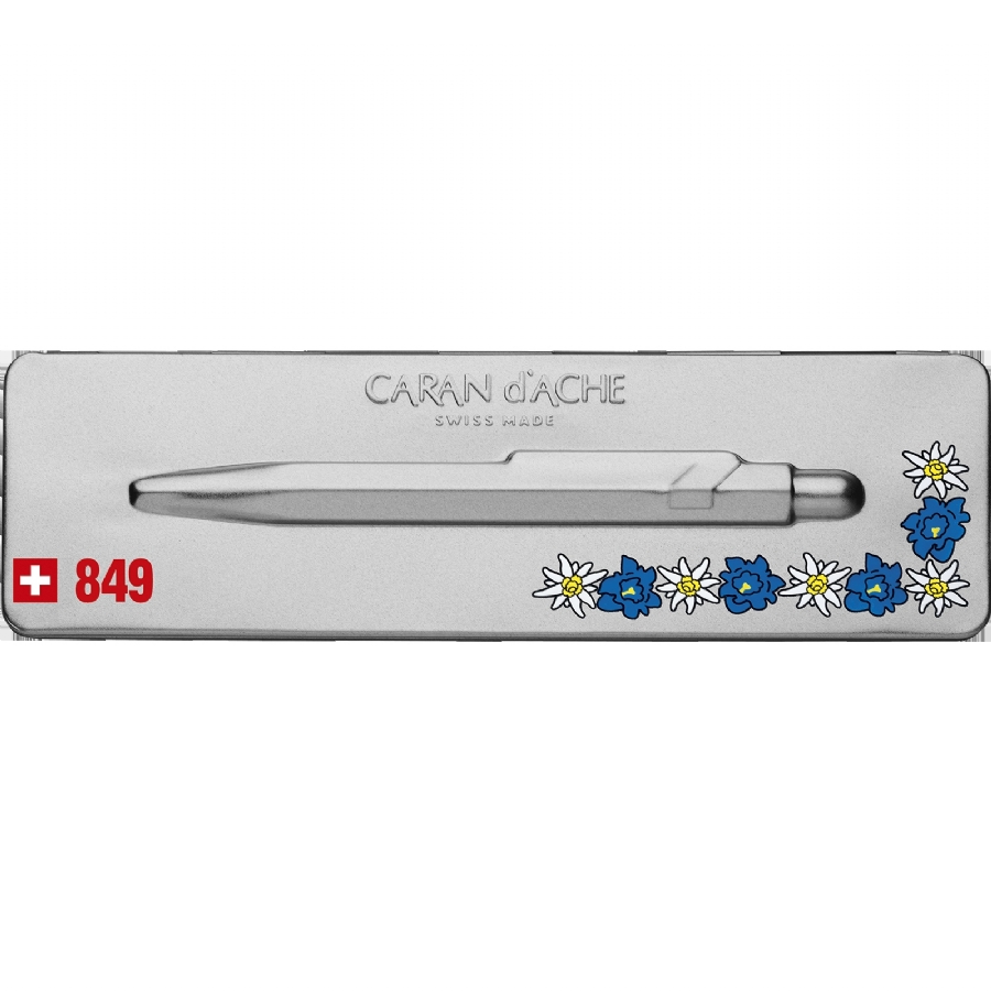 Corpo esagonale in alluminio. Il souvenir perfetto per il vostro soggiorno in Svizzera. Immergetevi nella cultura elvetica con la penna sfera 849 Edelweiss. Corpo nero opaco decorato con i celebri fiori delle Alpi. Questo modello presenta una custodia ultrasottile abbinata. L'impugnatura è ottimale. Penna con cartuccia Goliath blu che permette di scrivere fino a 600 pagine A4. Qualità svizzera. Made in Switzerland.