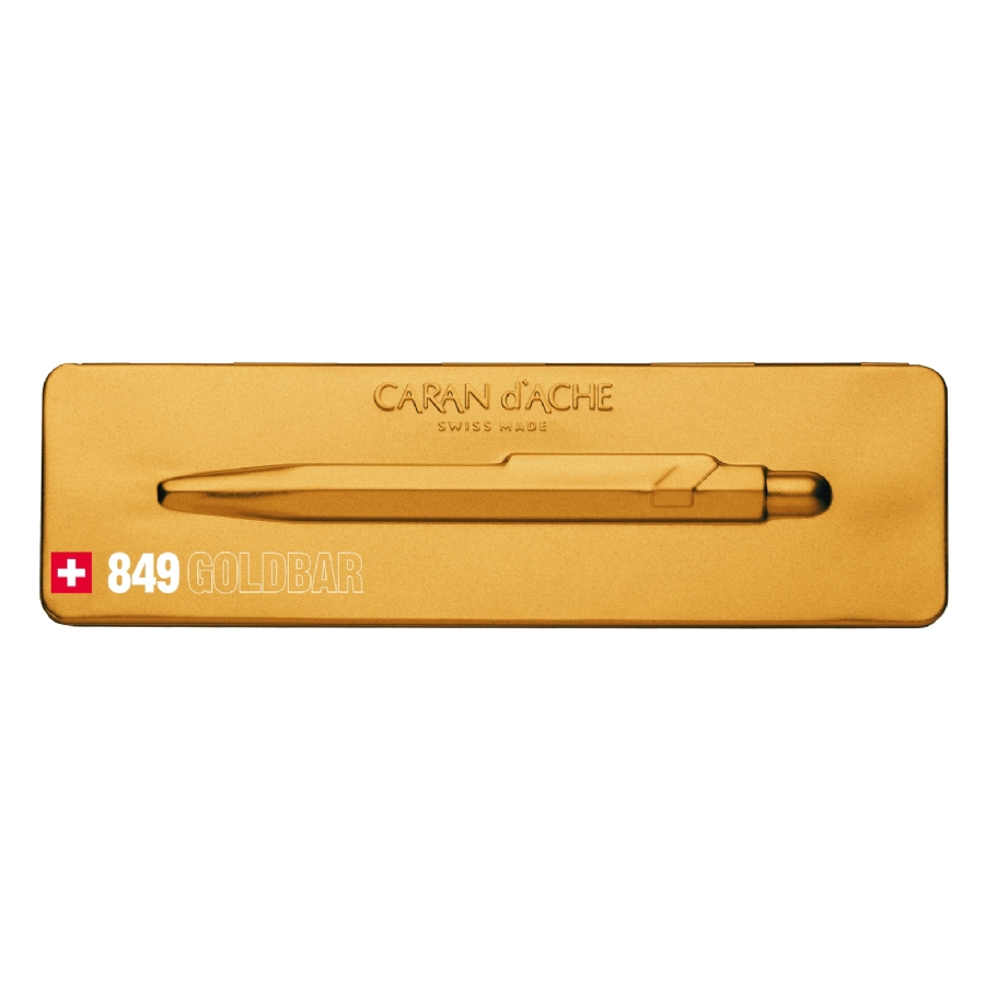 Corpo esagonale in alluminio. Elegante e glamour. Grazie alla sua silhouette in oro satinato e alle finiture con rivestimento di tre micron di oro, la penna acquisisce splendore e lucentezza restando accessibile a tutti. La sua confezione originale richiama alla mente i preziosi lingotti conservati nei caveau più sicuri. L'impugnatura è ottimale. Penna con cartuccia Goliath blu che permette di scrivere fino a 600 pagine A4. Qualità svizzera. Made in Switzerland.
