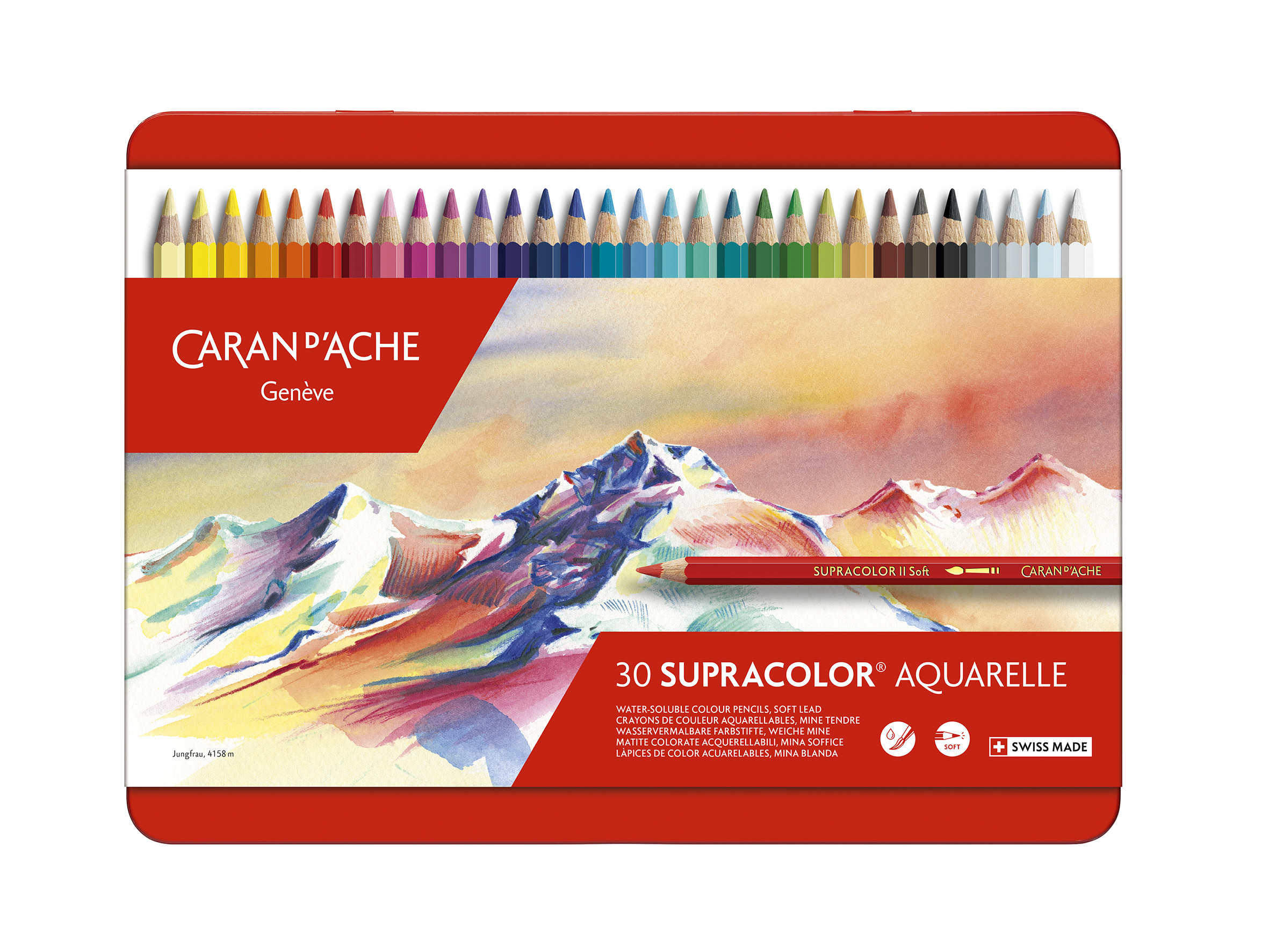 Scatola in metallo con 30 colori. A secco o ad acquerello, la ricchezza di pigmenti di queste morbide matite è perfetta per artisti di professione o in erba, illustratori, grafici ed insegnanti.