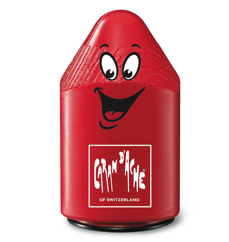 Temperamatite 2 fori in plastica rossa. Serbatoio interno per raccogliere il residuo. I due fori sono perfetti per temperare matite normali e matite maxi. Qualità Caran d'Ache. Fornito sfuso. Made in E.U.