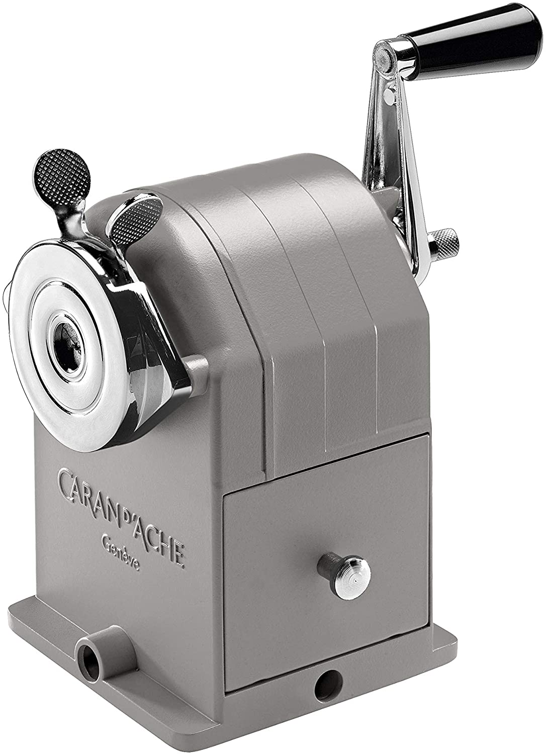 Affilamatite metallo, per matite tonde, esagonali e triangolari da Ø 4 a 10 mm. Fresa intercambiabile, con possibilità di regolare in base al diametro della mina. Un prodotto di eccezionale qualità e altissima fattura. Modello classico Caran d'Ache. Fornito in scatola regalo.