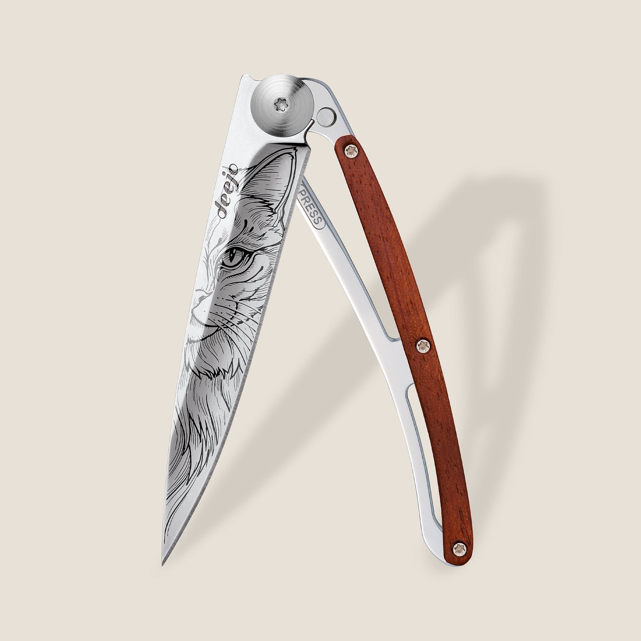 Tra grazia e mistero, un ipnotico coltello Deejo che celebra i nostri amici gatti.