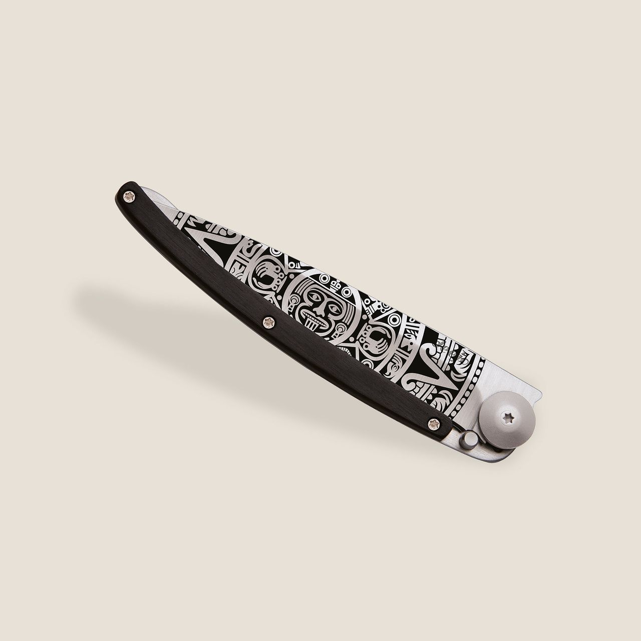 Il legno di ebano che adorna il manico di questo coltello Deejo è un vero e proprio inno ai neri profondi. Questa eccezionale specie legnosa ha la particolarità di essere praticamente insensibile all'umidità ambientale. Risulta così essere quanto di più denso, resistente e prezioso ci sia, ideale per questa magnifica posata.