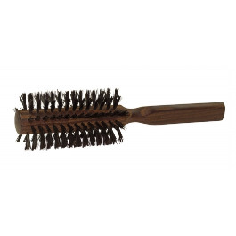 Spazzola per capelli rotonda in termolegno con setole di cinghiale nere dure. Dimensioni: 22 cm.