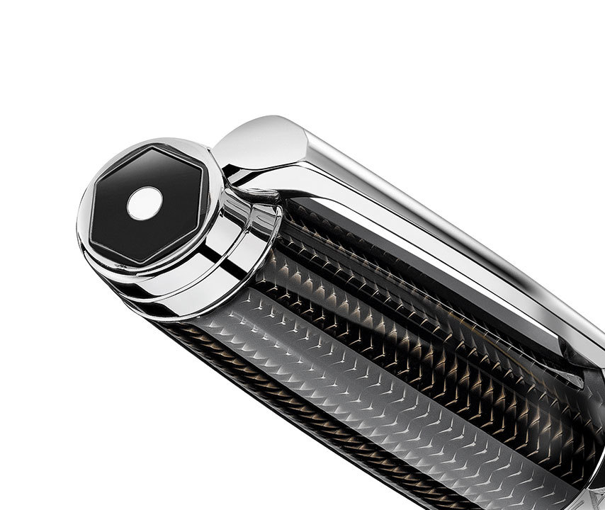 Rhodium and silver-coated push button, carrying a Caran d’Ache isotype (black lacquered hexagon)