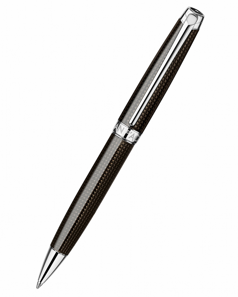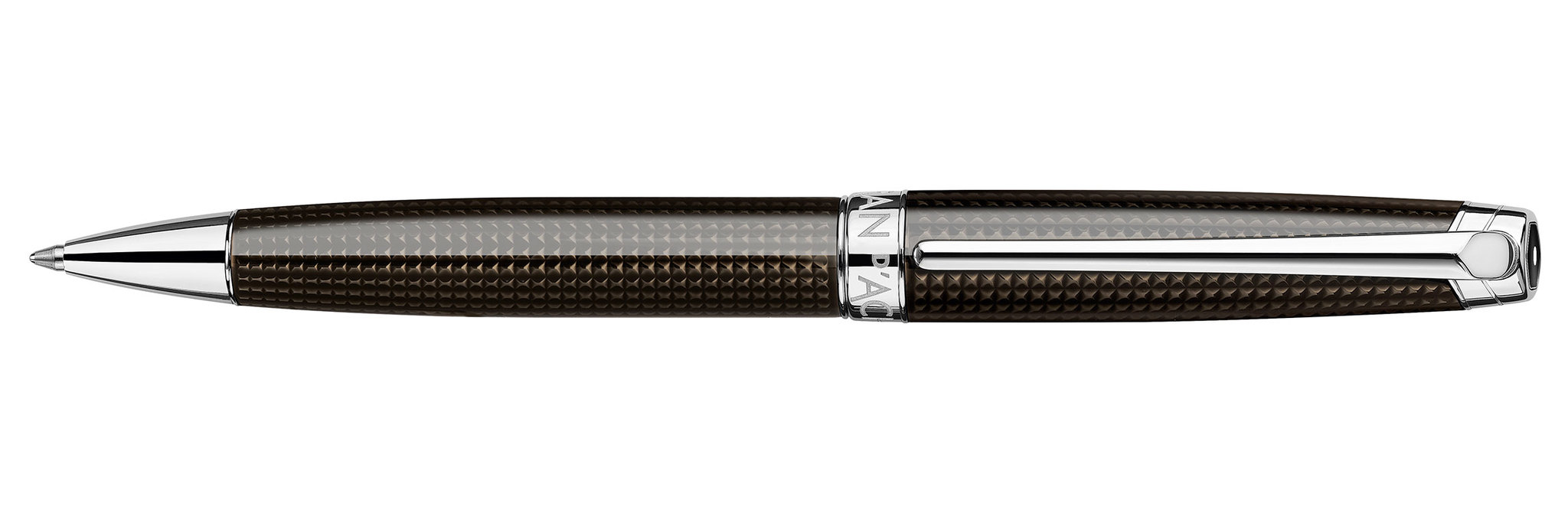 Round brass body and cap covered with a transparent black lacquer and a « clous de Paris » guilloché motif