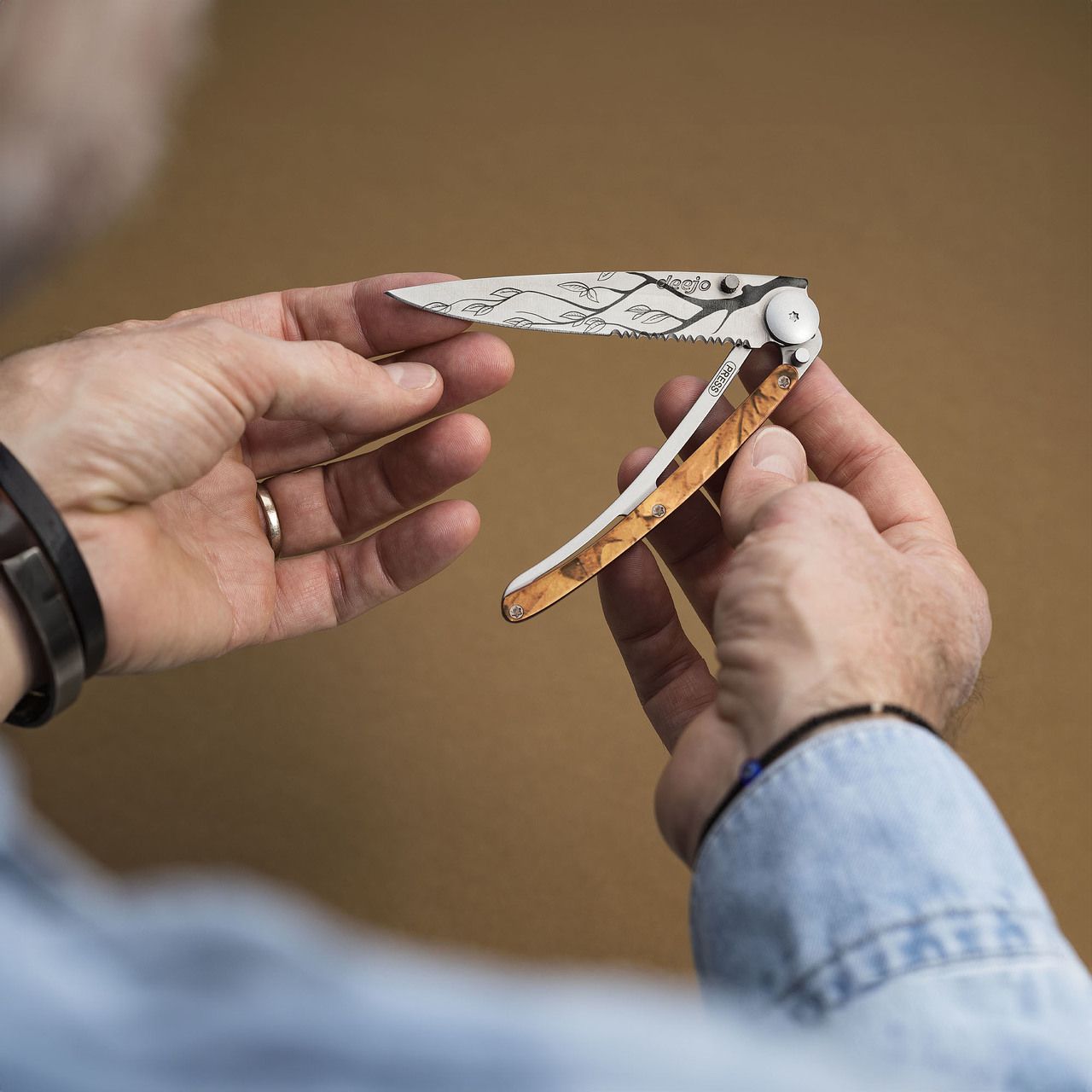 At Deejo, we believe that the best knife in the world is the one you will use every day. For this reason, we have designed our lightweight, ultra-light knives, without sacrificing dimensions or materials, to allow you to carry only the essentials with you: the pleasure of a perfect cut.