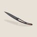 Obtained by fixing grey titanium onto a stainless steel base, this finish has a double advantage. First, it reinforces surface resistance to shocks and scratches, and second, it renders sublime the pure lines of your knife displaying a temperance pushed to its peak. A discreet finish par excellence, the steel acquires a slight patina over the years to further enhance this beautiful piece of cutlery.