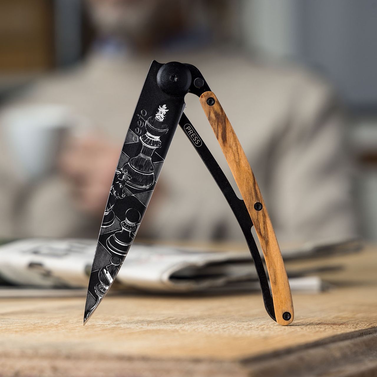 But that's not all: easy to wear, to use, to adopt, Deejo goes beyond the knife by offering the possibility of getting "tattooed": tattooing the knife, as you would mark the skin, is offering this already very personal object. a completely different dimension: his identity.