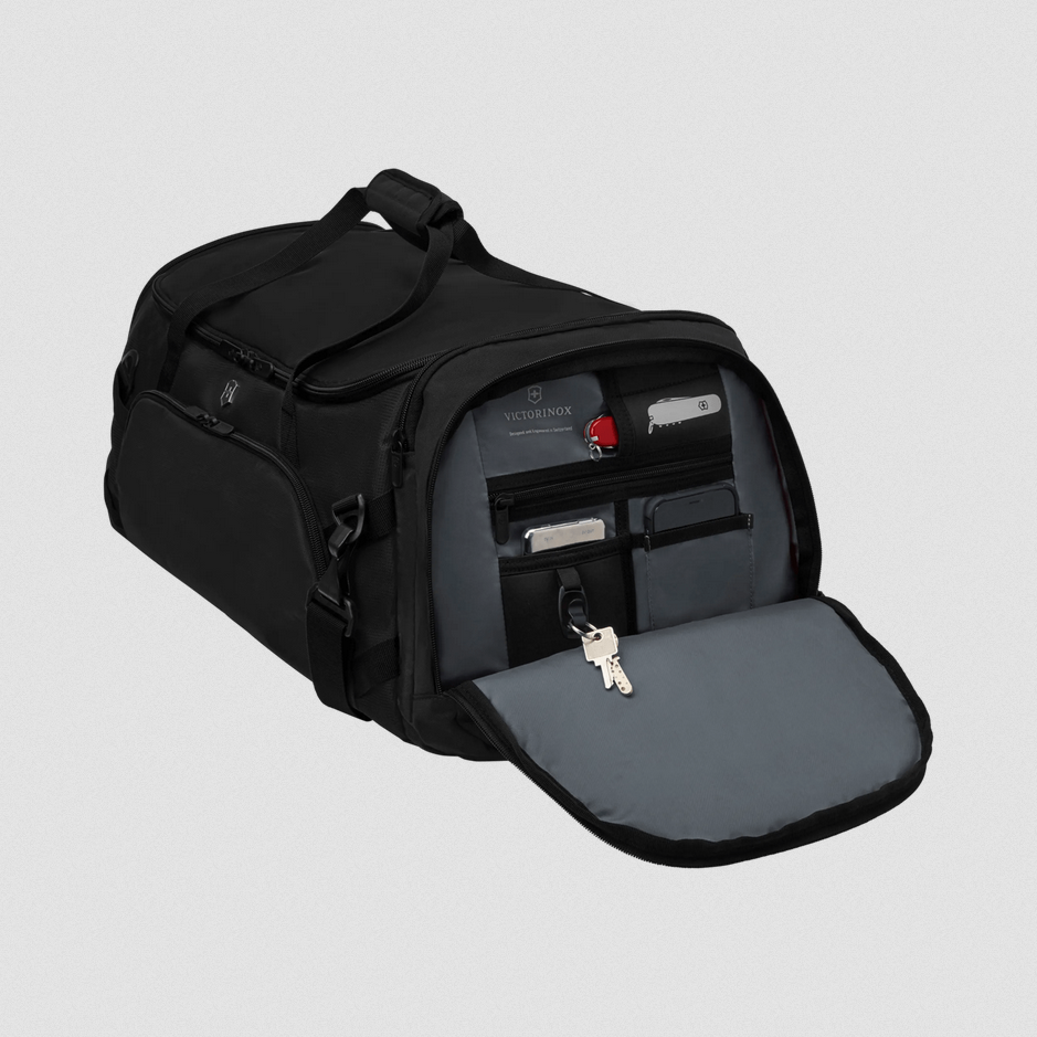 Convertible Duffel Bag with Hidden Shoulder Straps From hands-free commutes to rushing to catch a flight, this backpack/duffel bag adapts easily to any situation. Crafted from super-durable polyester and featuring adjustable, padded shoulder straps, the VX Sport EVO 2-in-1 Backpack/Duffel combines functionality with comfort. Clever multifunctional pockets offer versatile storage, making it an indispensable travel companion you’ll want by your side at all times./p>