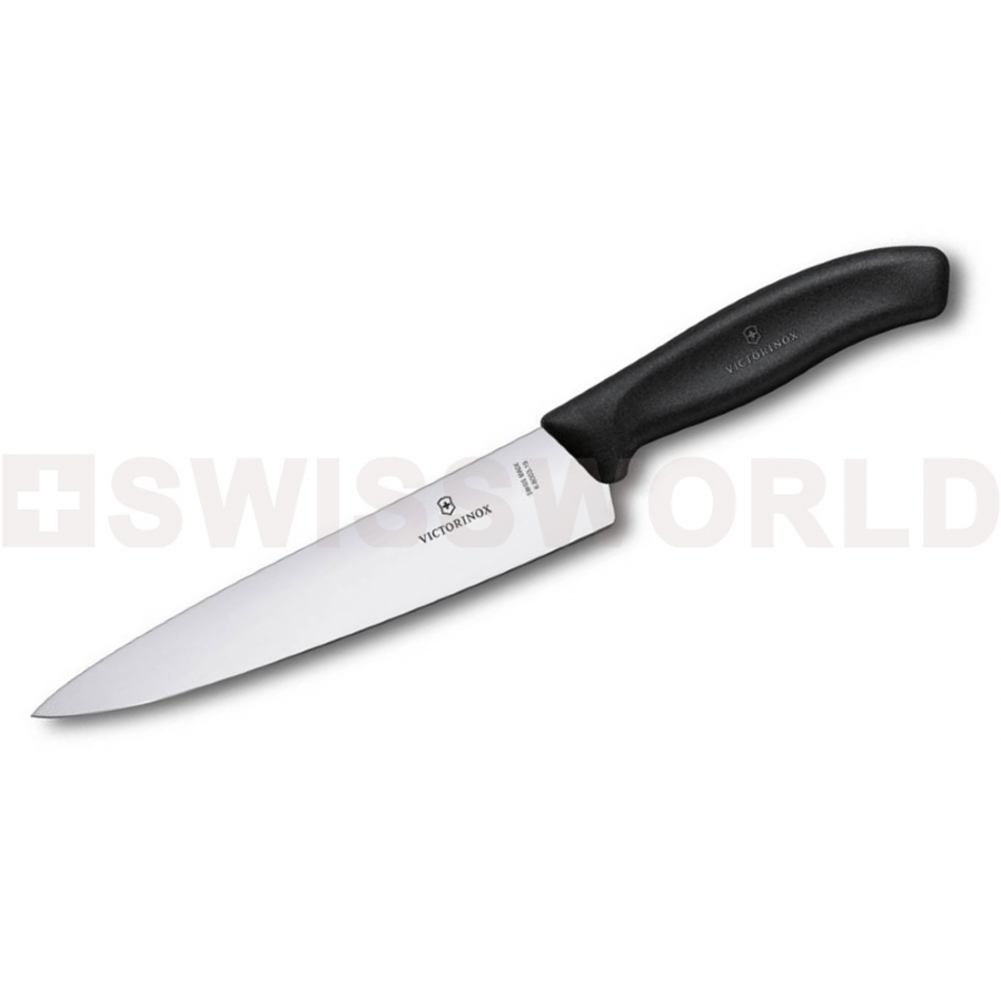 Coltello da Cucina con lama liscia da 19 cm. adatto sia per uso domestico che per un intenso utilizzo a livello professionale. Lama garantita Victorinox, dal taglio preciso e pulito. Manico ergonomico, antiscivolo e adatto alla lavastoviglie realizzato in Polipropilene Nero. Fornito in scatola regalo.