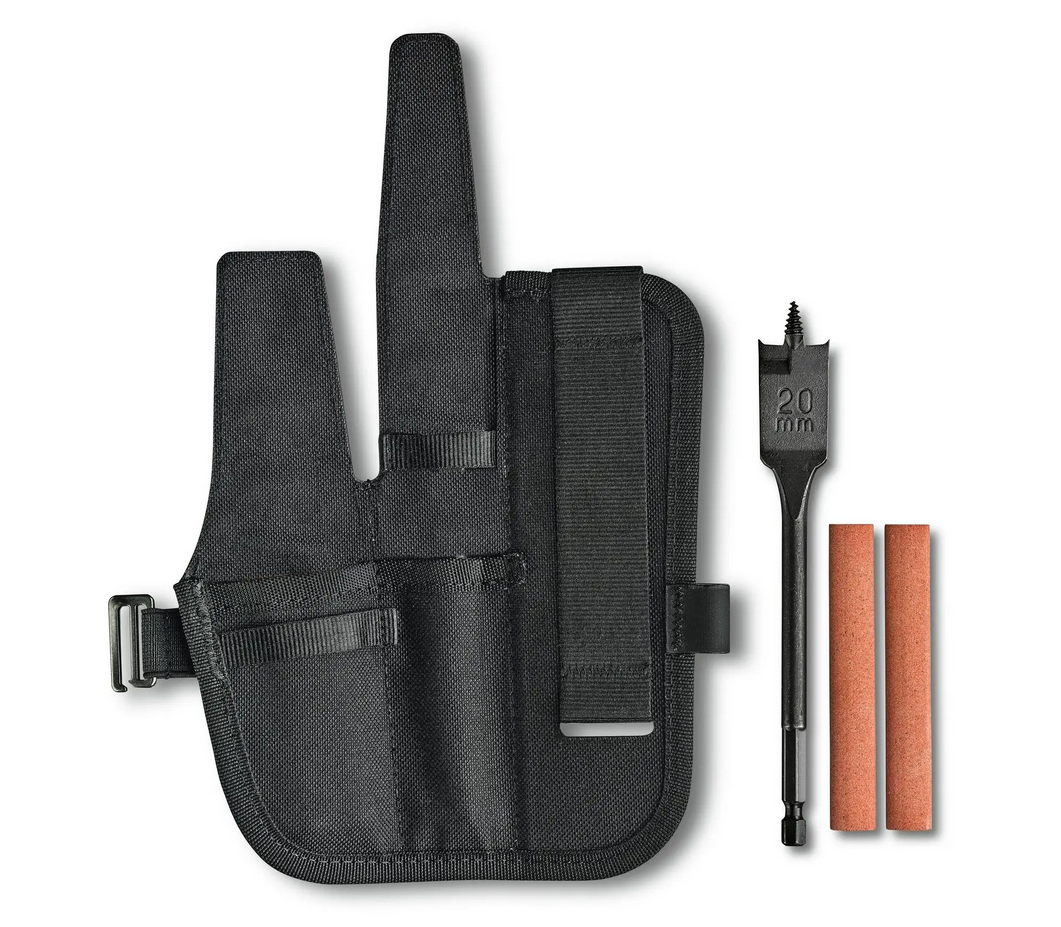 Dexterous and well curated, the Venture Pro Kit houses a flat drill, 2 cm, and two sharpening stones. Designed to seamlessly carry your Venture Pro knife and crafted in durable 600D polyester, this is the pouch to take on all your bushcraft adventures. Effortlessly drill wood, then sharpen your well-used blades on the go.