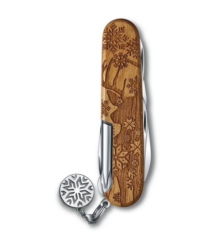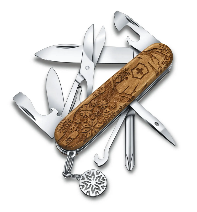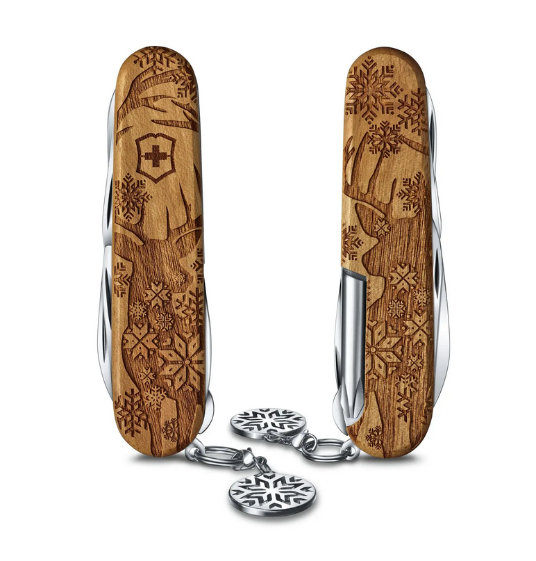 Let yourself be transported to the magical snowy landscapes of a Nordic winter. The Super Tinker Wood Winter Magic 2022 features richly patterned walnut wood scales, exquisitely engraved and encasing 12 handy functions. Each of the 10,000 pieces comes in a sustainable semitransparent gift box and with a skin-friendly attachable charm. With its impeccable attention to detail and alluring design, it’s a covetable pocket companion.