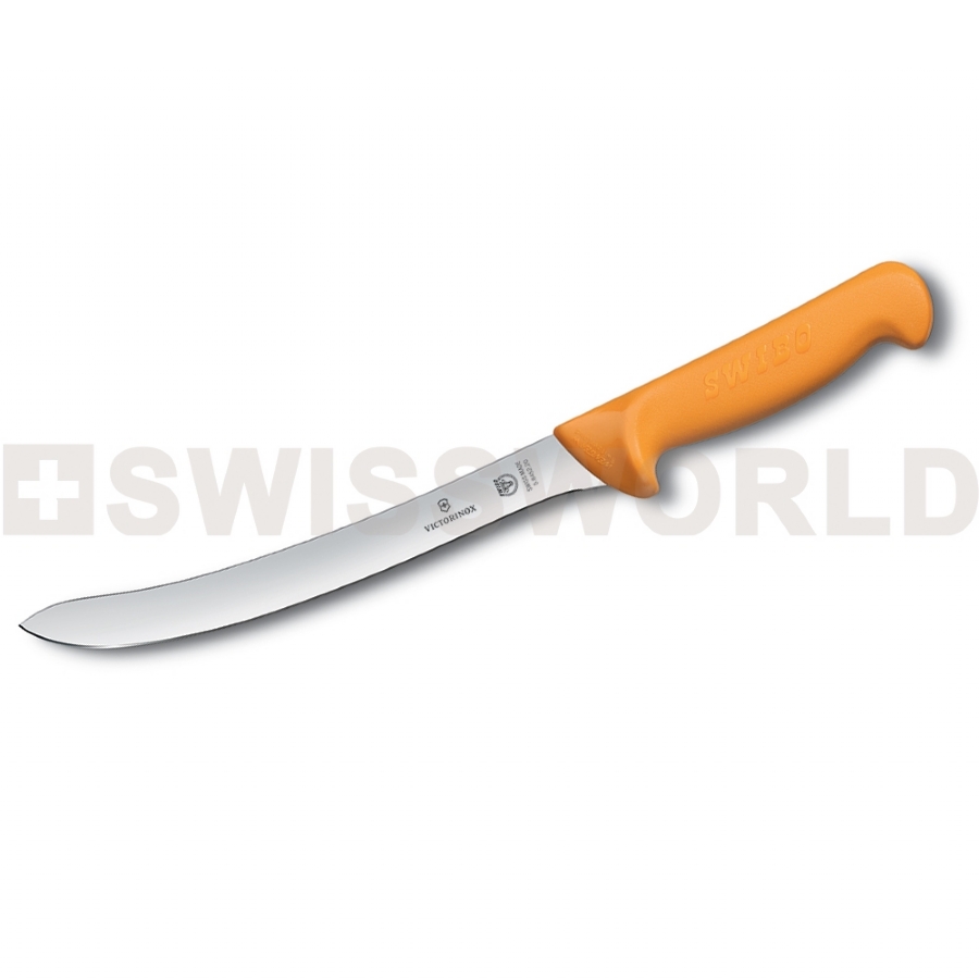 Coltello per pesce con lama flessibile a scimitarra. Lunghezza lama: 20 cm. Manico giallo in poliammide -6. Adatto alla lavastoviglie e sterilizzabile fino a 120°C. I coltelli professionali Victorinox SWIBO sono prodotti in Svizzera. Lame fabbricate con selezionati acciai inossidabili di alta qualità. Manico "giallo segnale" per individuarlo immediatamente sui banchi di lavorazione, manico ergonomico, sicuro, igienico e antiscivolo. Forniti in blister plastico protettivo antitaglio.