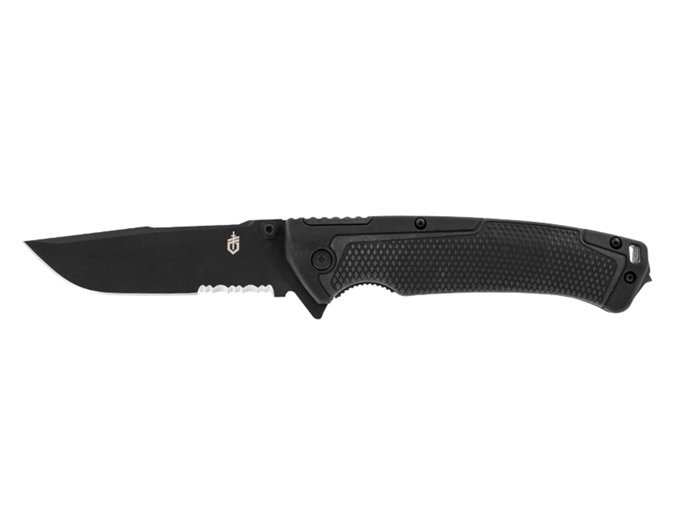 Coltello tattico e funzionale da tasca con apertura facilitata, blocco lama e clip. Il manico presenta anche un frangivetro incorporato. Lama semi seghettata con rivestimento in ceramica nera per garantire la resistenza alla corrosione e ridurre la visibilità.