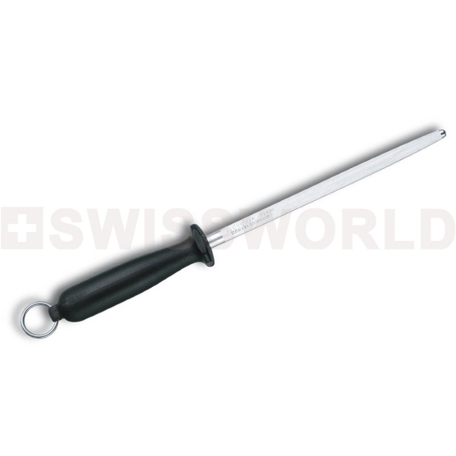 Acciaino da casa Tondo. Lunghezza totale: 18cm. Manico Nero Antiscivolo e Anello in Acciaio. Ideale per rinnovare il filo dei vostri coltelli preferiti.