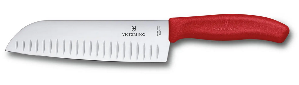 Presentiamo la nostra lama multiuso con manico in una vibrante tonalità di rosso. Scegli il coltello Santoku Swiss Classic e fai felice la tua cucina sia dal punto di vista estetico che funzionale. Questa lama di ispirazione giapponese è in grado di affrontare con abilità tantissimi ingredienti sul tagliere. Da frutta e verdura a pesce, carne e formaggio, è un coltello capace, preciso e pronto ad affettare e sminuzzare ogni volta che vuoi.