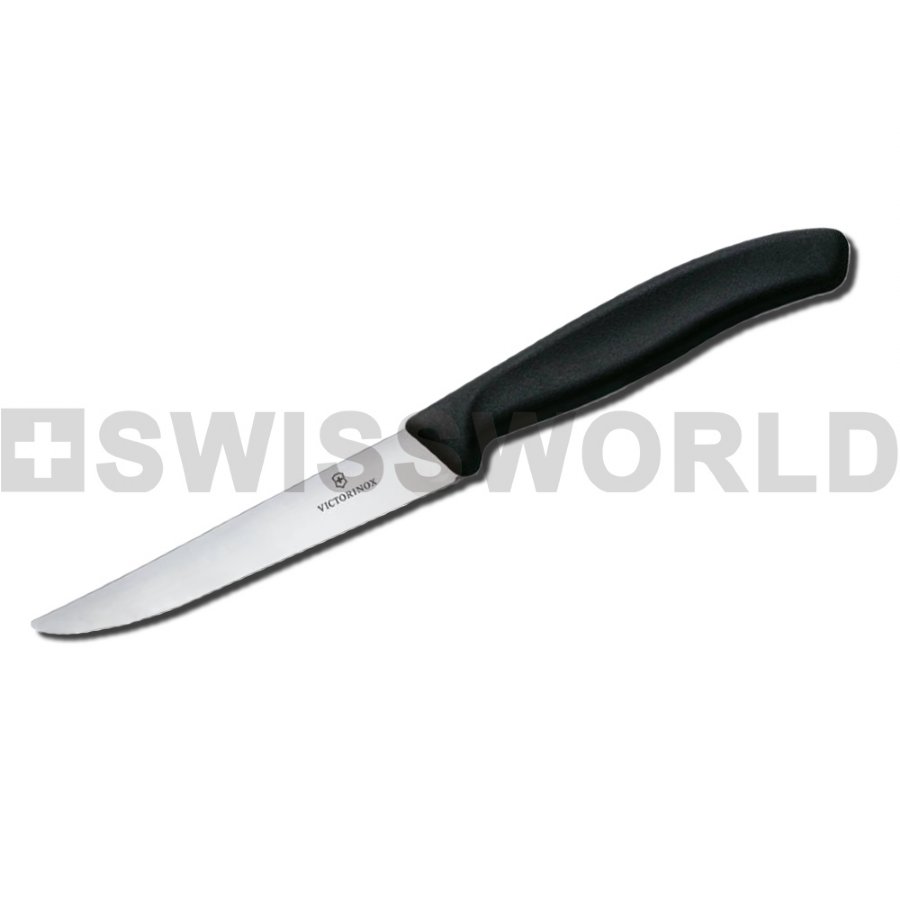 Coltello da Bistecca con lama Liscia da 11cm e punta. Lama garantita Victorinox, dal taglio preciso e pulito. Manico ergonomico, antiscivolo e adatto alla lavastoviglie realizzato in Polipropilene nero.