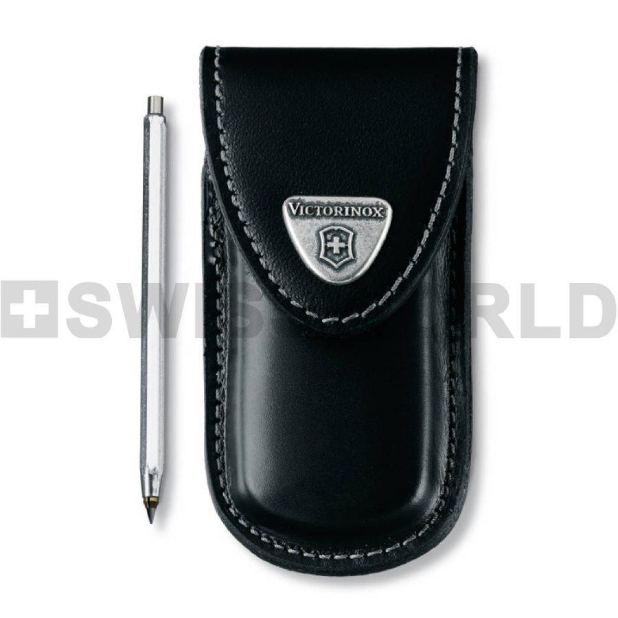 Custodia in pelle nera per multiuso GOLFTOOL con chiusura in velcro e gancio rotante cintura. Gancio in metallo con tacche a scatti che attaccato alla cintura rende il fodero utilizzabile sia in verticale che orizzontale. Asola laterale esterna che ospita compresa nella confezione un portamine originale Victorinox. Misure interne in mm (altezza x larghezza x spessore): 85 x 35 x 10. Stemma metallico Victorinox. Prodotto Originale Victorinox.