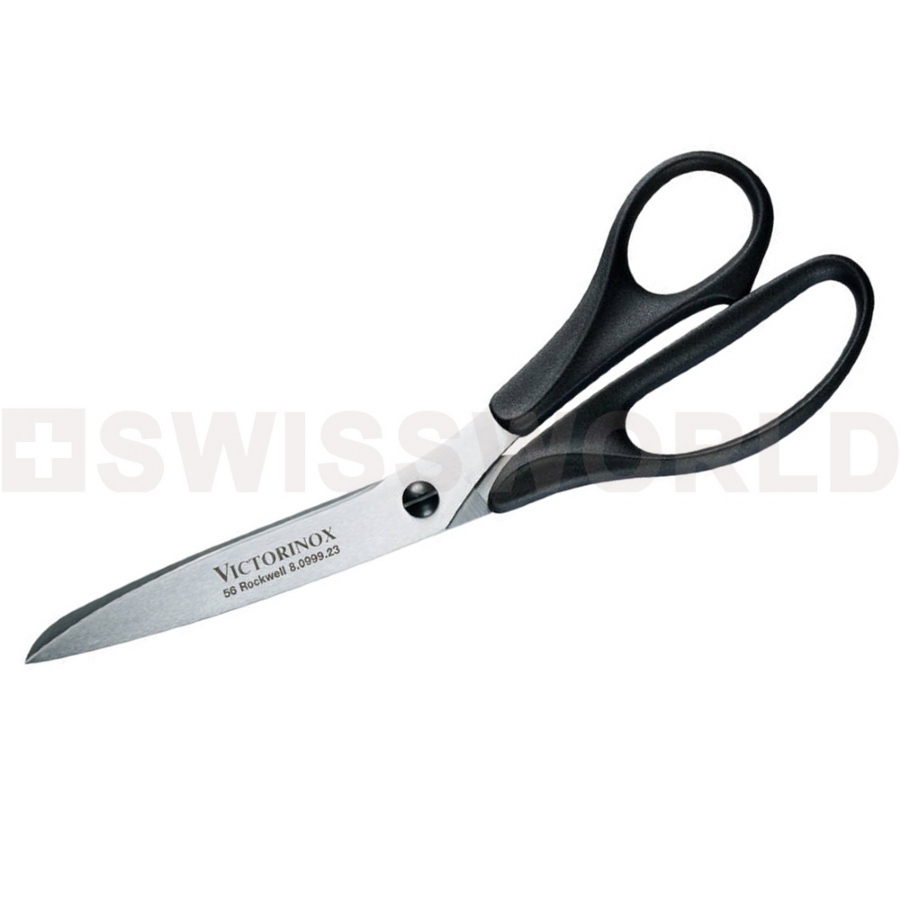 Forbici da casa Universali in acciaio Inox con occhielli in plastica. Lunghezza 23cm. Alta qualità garantita Victorinox. Lunga Durata. Fornita con bustina protettiva.Contraddistinta dall'ottima qualità e purezza dell'acciaio inox impiegato che garantisce un taglio preciso e sottile.