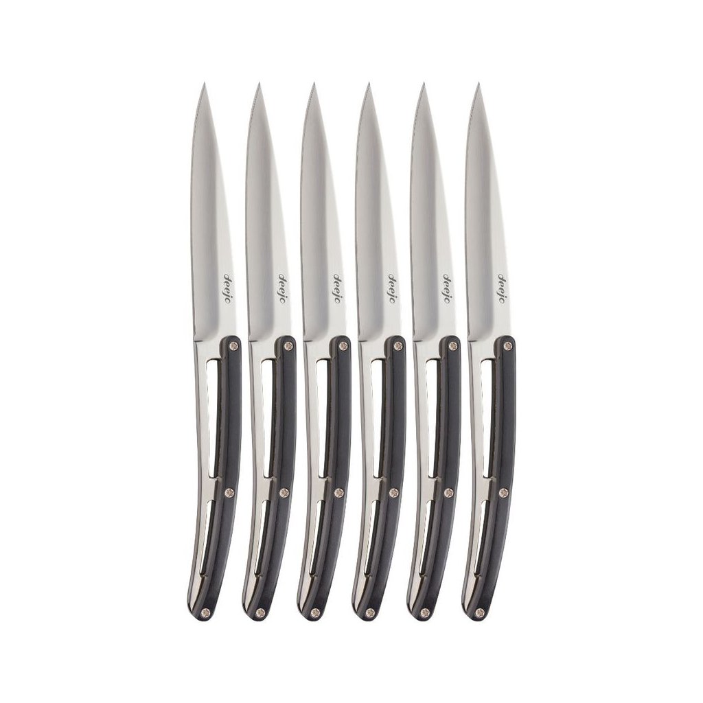 Set 6 coltelli da tavola/bistecca a lama fissaliscia con finiture a specchio, manico con inserto in Paperstone i(resina e carta 100% riciclata)