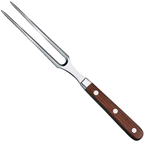 Forchettone forgiato realizzato con ottimo acciaio inox tedesco ed impugnatura rivettata in Legno.