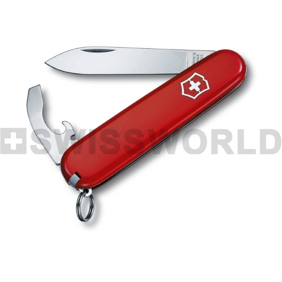 Multiuso da 84 mm essenziale e leggero: lama, utensile multifunzione (leva capsule, apriscatole, cacciavite,spelafili), anello portachiavi, pinzetta, stuzzicadenti.