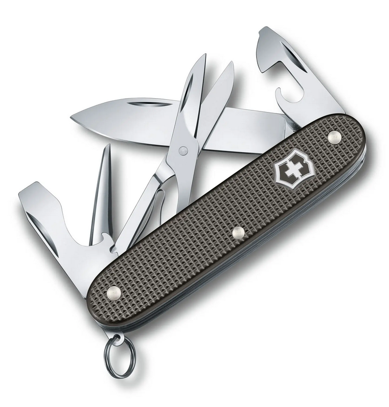 - Multiuso realizzato in Svizzera con guance in resistente alluminio goffrato e anodizzato e 9 funzioni