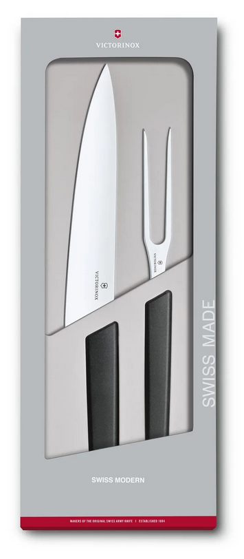 Il connubio perfetto fra bellezza e qualità autentica: scopri il nostro Set per taglio carne Swiss Modern composto da 2 pezzi. Proprio come ogni pezzo di questa collezione, il forchettone e il coltello sono stati modellati ergonomicamente per garantire il massimo del comfort. I due rebbi del forchettone trattengono qualsiasi alimento, mentre la lama in acciaio inossidabile con filo dritto del coltello taglia senza sforzo ogni tipo di carne. Questo set da due pezzi con manici sintetici per una presa confortevole e sicura garantirà un nuovo livello di maestria alla tua capacità di taglio.